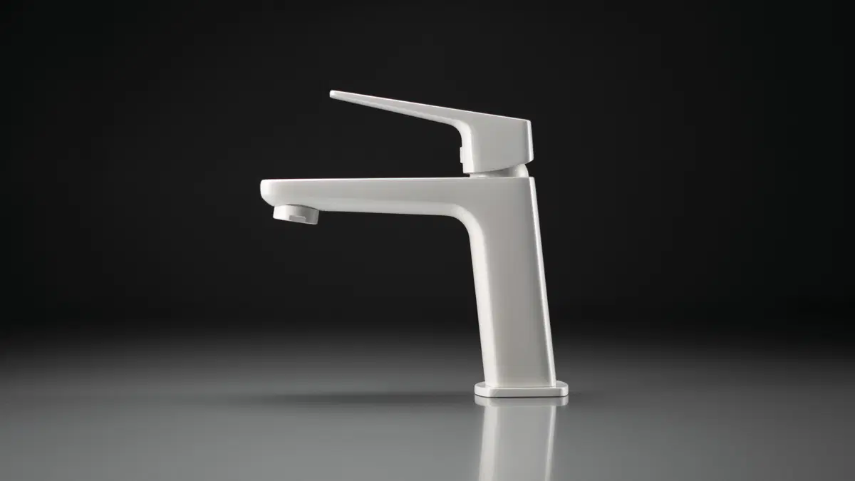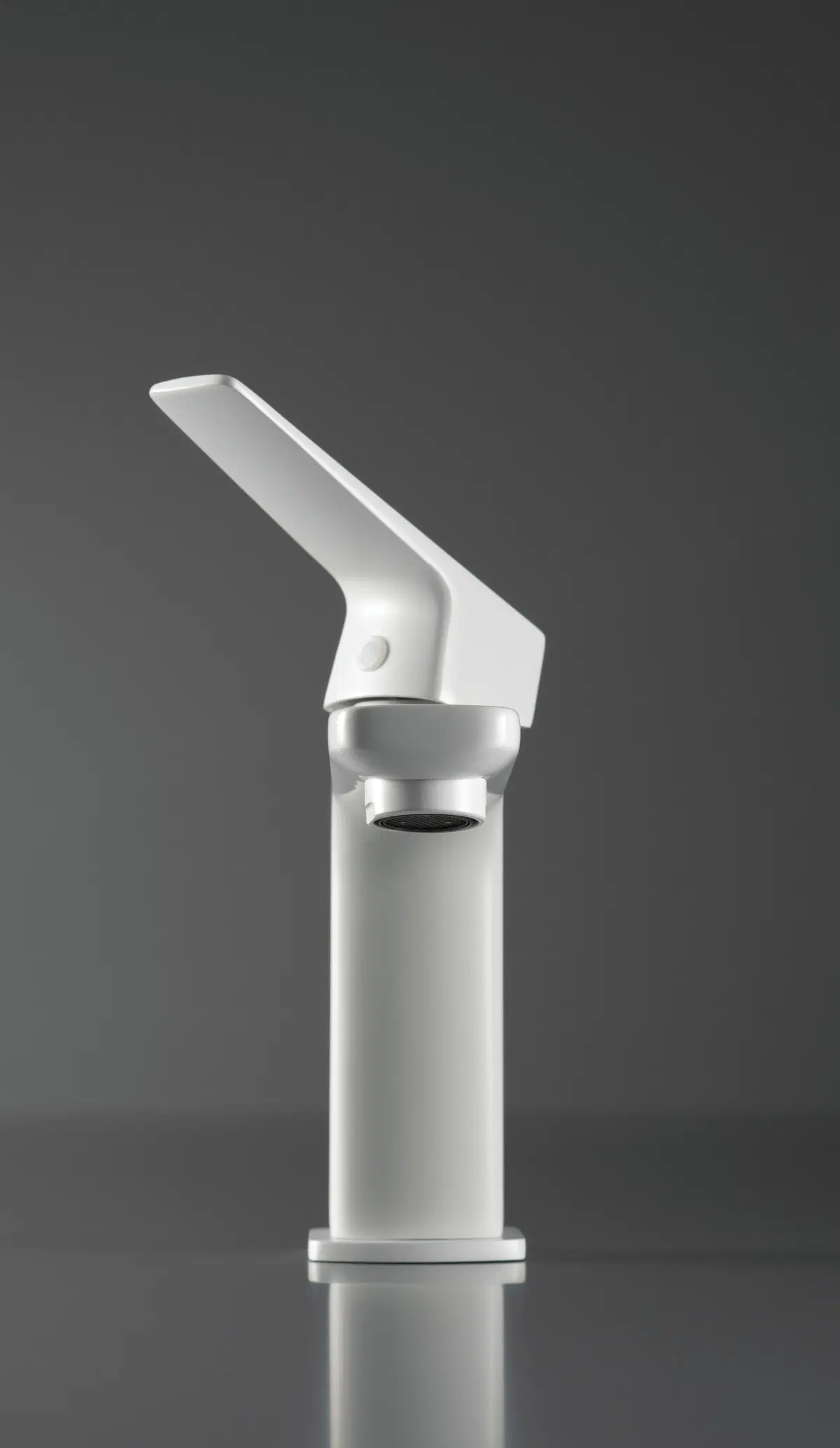 Elegancka bateria umywalkowa Blur w kolorze bianco. Trwała, oszczędna i wygodna w użytkowaniu – idealna do nowoczesnej łazienki.