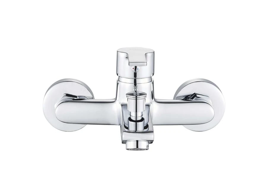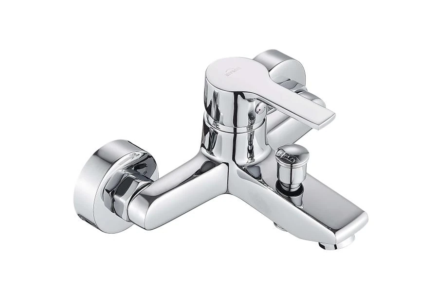 Nowoczesna bateria wannowa w chromie. Minimalistyczny design, trwały mosiądz i idealne dopasowanie do małej łazienki.