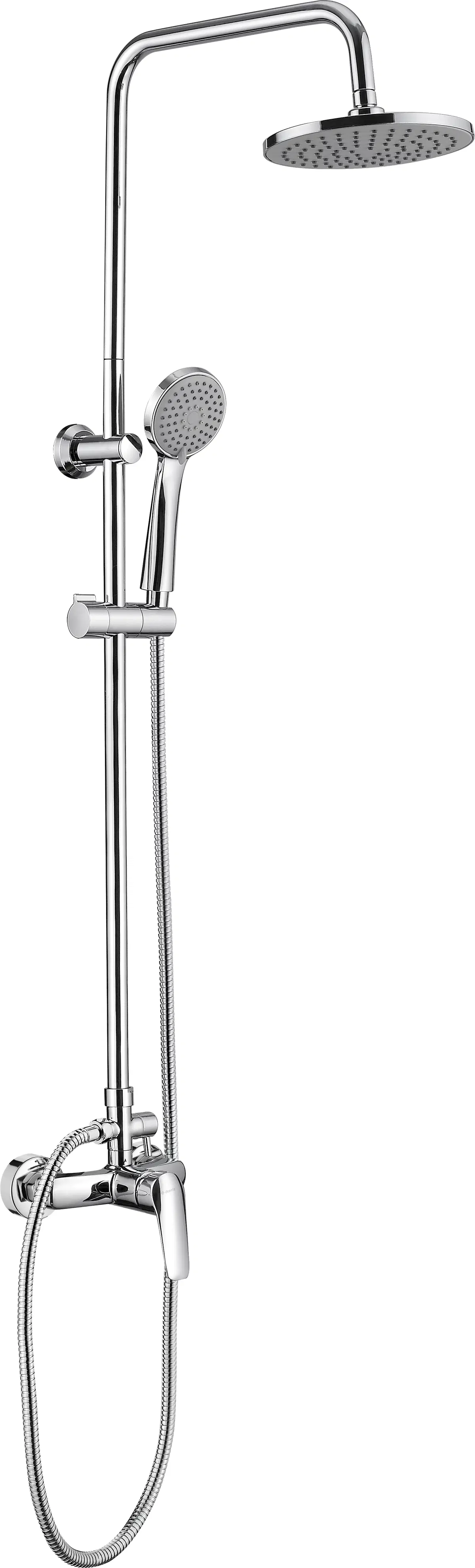 Zestaw składa się z solidnej mosiężnej baterii jednouchwytowej, stalowego drążka, dużej głowicy natryskowej oraz słuchawki prysznicowej z wężem. Regulowany rozstaw mocowań umożliwia łatwe dopasowanie drążka do istniejących otworów montażowych, co znacząco ułatwia instalację.