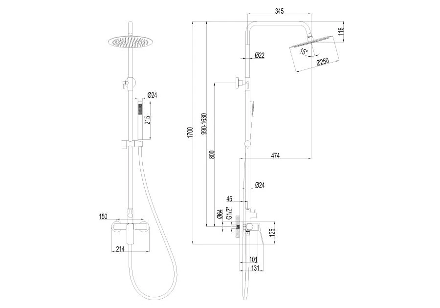 Zestaw: deszczownia + bateria natryskowa