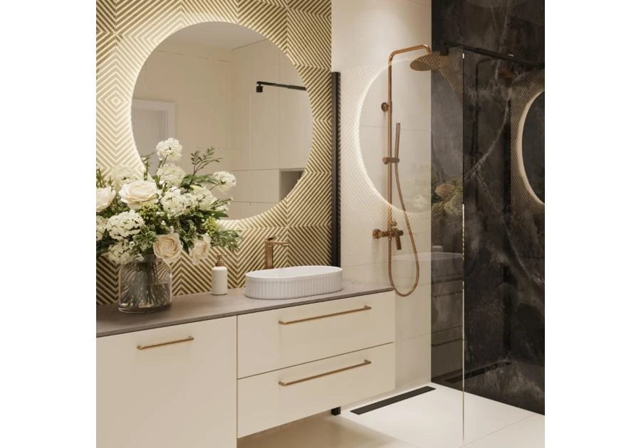 Deszczownia z baterią Neri Plus miedź – luksusowy prysznic w twojej łazience