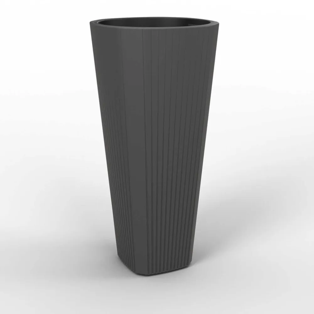 Donica ogrodowa MUZA o średnicy 39 cm i wysokości 81 cm to elegancka, antracytowa donica wykonana z trwałego materiału odpornego na warunki atmosferyczne. Charakteryzuje się subtelnym gradientowym wzorem, idealna do eksponowania roślin w ogrodzie, na tarasie lub balkonie.