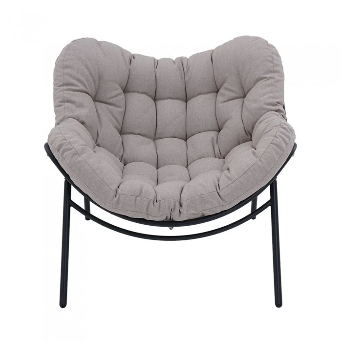 Nowoczesny fotel ogrodowy z grubą poduszką 16 cm. Stabilna stalowa konstrukcja i wysoki komfort na taras, balkon i ogród.