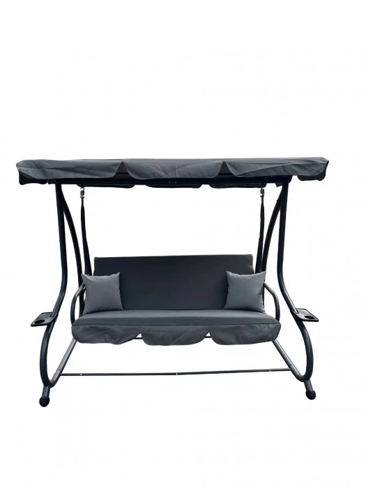Stwórz swoją strefę relaksu w ogrodzie lub na tarasie! Huśtawka ogrodowa Pegi to wygodne, 3-osobowe siedzisko, które pozwala odpocząć w gronie rodziny i przyjaciół. Nowoczesny design w eleganckim szarym kolorze doskonale wpisuje się w każdą aranżację przestrzeni zewnętrznej.