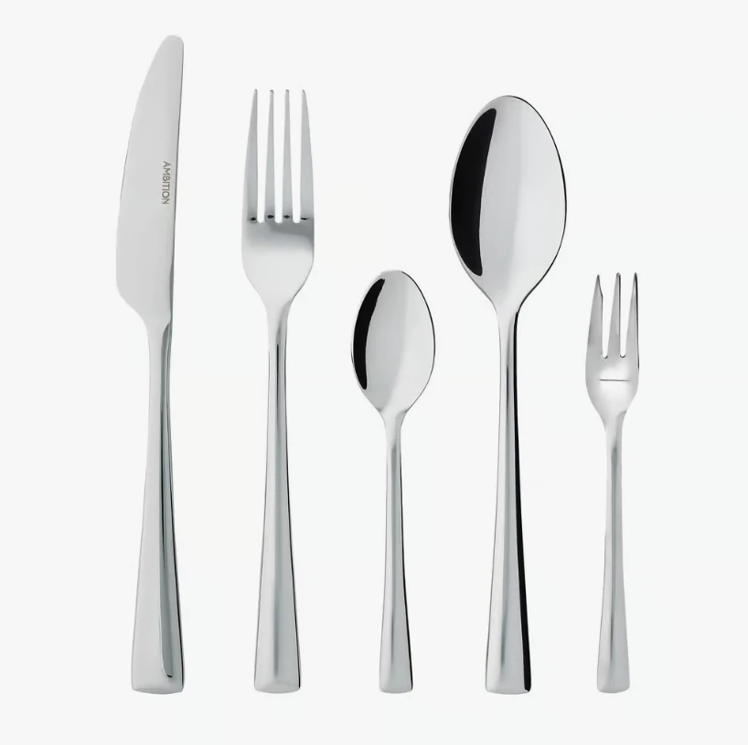 Komplet sztućców Siena marki Ambition to połączenie klasycznej elegancji i wyjątkowej funkcjonalności. Zestaw składa się z 60 elementów, co pozwala na komfortowe użytkowanie przez 12 osób, idealnie sprawdzając się zarówno na co dzień, jak i podczas wyjątkowych uroczystości.