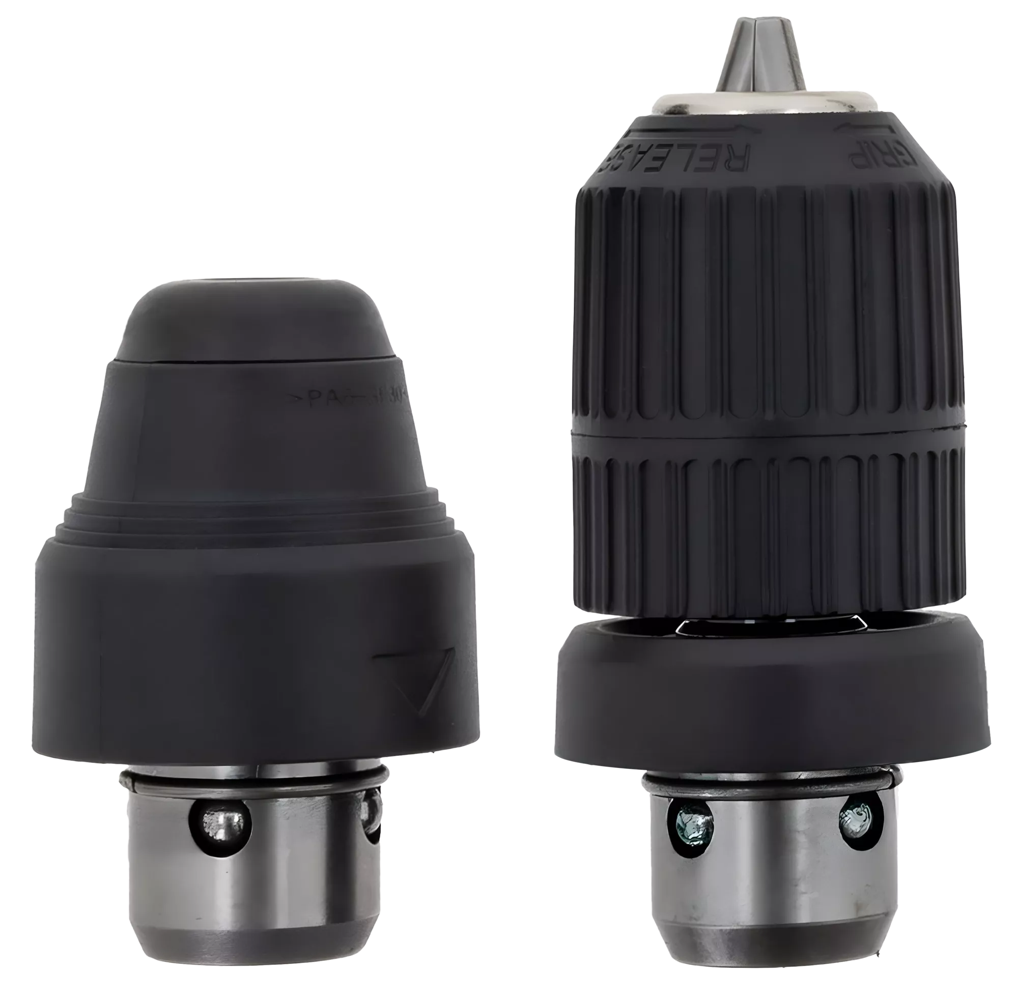 Bogate wyposażenie – komplet wierteł, dłut, głowica samozaciskowa i walizka.
