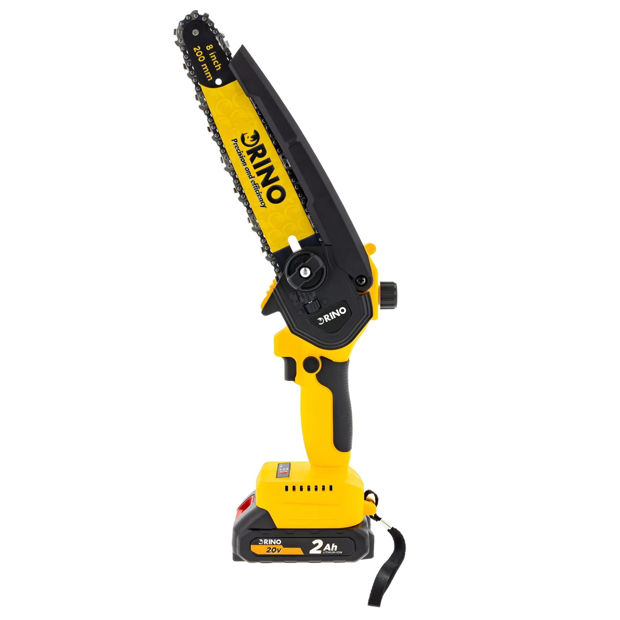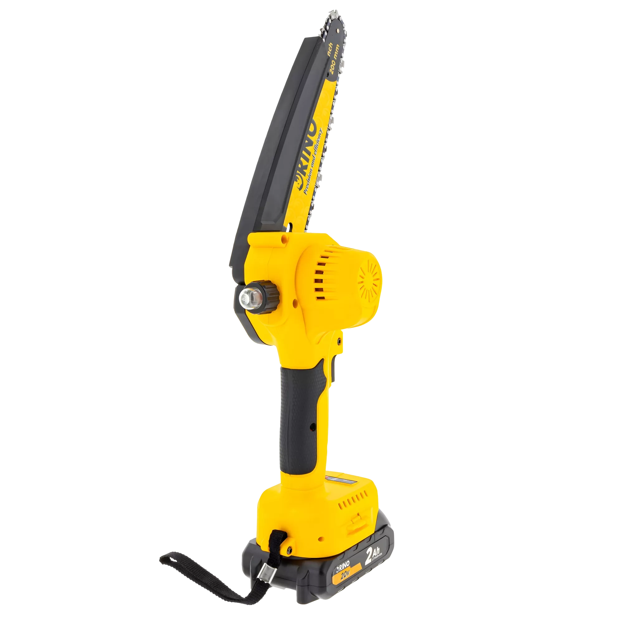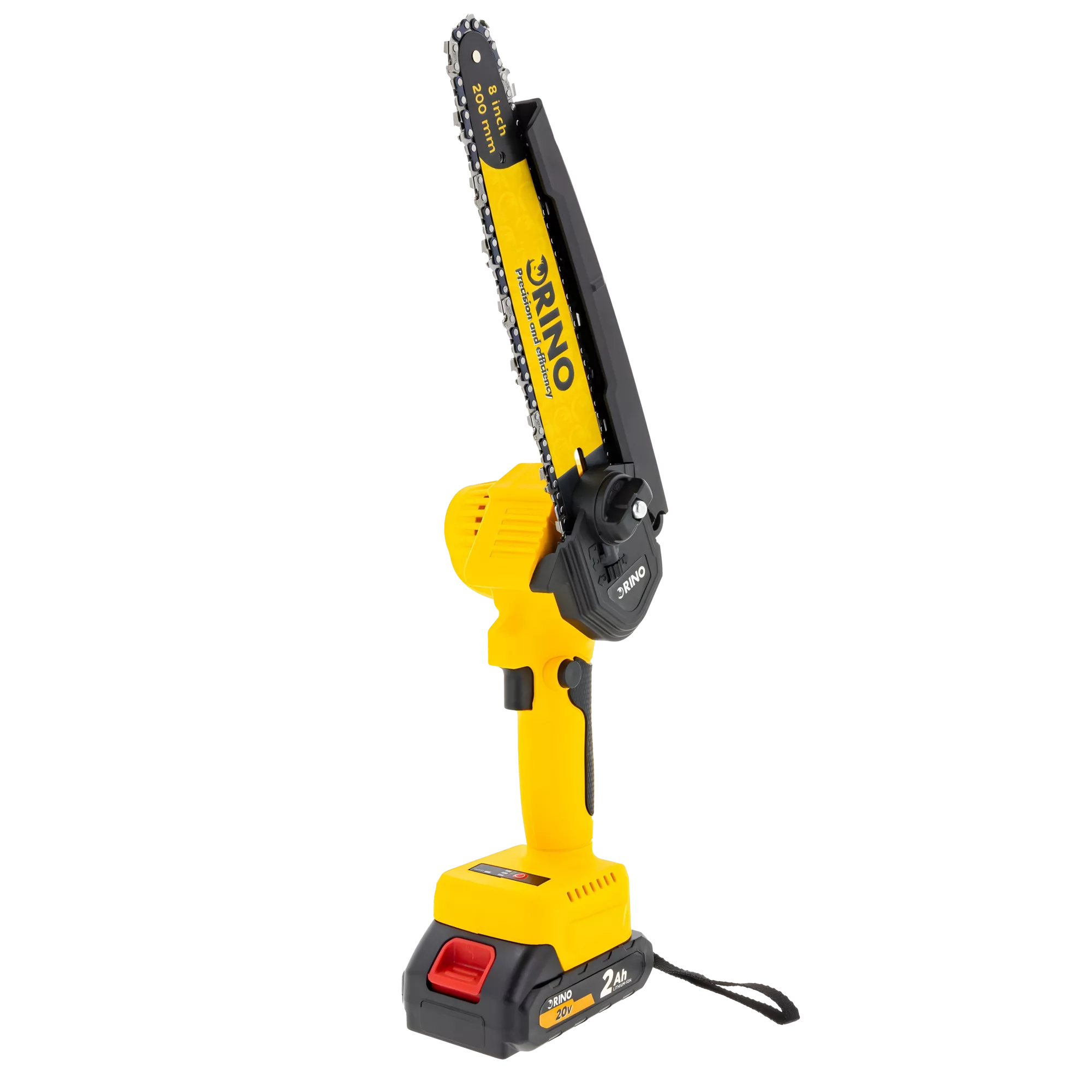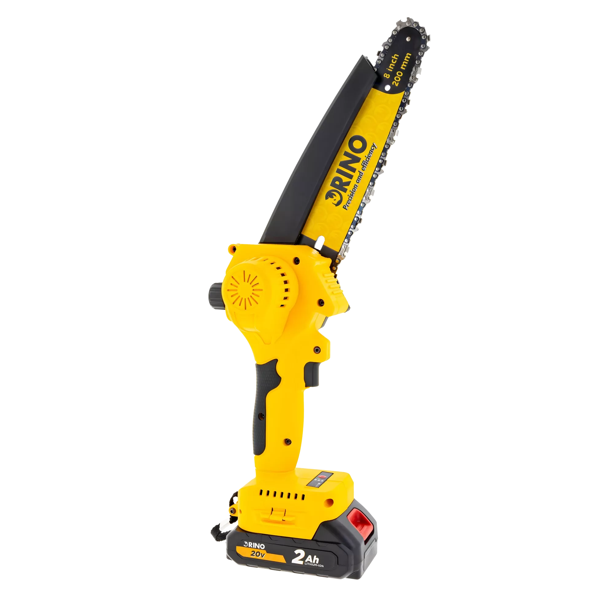 Akumulatorowa pilarka łańcuchowa Rino MSAW20LI-20 20V z prowadnicą 200 mm, silnikiem bezszczotkowym, 2 akumulatorami 2 Ah i ładowarką. Idealna do cięcia drewna, gałęzi i prac ogrodowych. Wysoka prędkość łańcucha 9,8 m/s zapewnia szybkie, precyzyjne cięcia. Kompaktowa, wydajna i mobilna – gotowa do działania wszędzie tam, gdzie jej potrzebujesz.