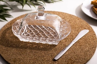 Maselnica szklana Karo ALTOM to obowiązkowy element zastawy stołowej w domu. Praktyczna, estetyczna i piękna szklana maselnica pasuje na każdy stół. Przyda się podczas codziennych posiłków, ale dzięki swojej ozdobnej formie - sprawdzi się także w czasie większych uroczystości jako uzupełnienie dekoracji. Dzięki pokrywie chroni masło przed zepsuciem i szybkim roztopieniem. Szkło, z którego jest wykonana maselnica jest materiałem wysokiej jakości, jest odporne na uszkodzenia. Maselnicę można przechowywać w lodówce oraz myć w zmywarce, dzięki czemu łatwo utrzymać ją w czystości.