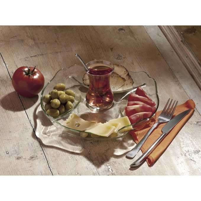 Wysokiej jakości półmisek do serwowania różnego rodzaju sałatek i przekąsek, sprawdzi się zarówno na co dzień jak i na imprezach okolicznościowych. Posiada cztery dzielone części na przystawki oraz jedno wgłębienie na środku na sos lub dip.