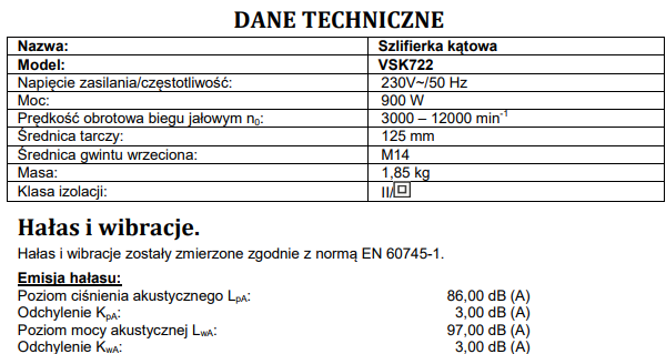 Szlifierka kątowa 900W 125mm VSK722 Vander