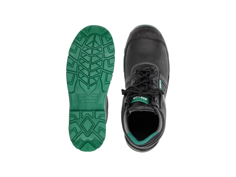 Trzewiki skórzane Thuro High S3 od Stalco to solidne obuwie ochronne, idealne do pracy w trudnych warunkach. Zapewniają komfort, bezpieczeństwo i odporność na wilgoć. Doskonałe do budownictwa, przemysłu i remontów. Wyposażone w elementy odblaskowe i system amortyzacji.