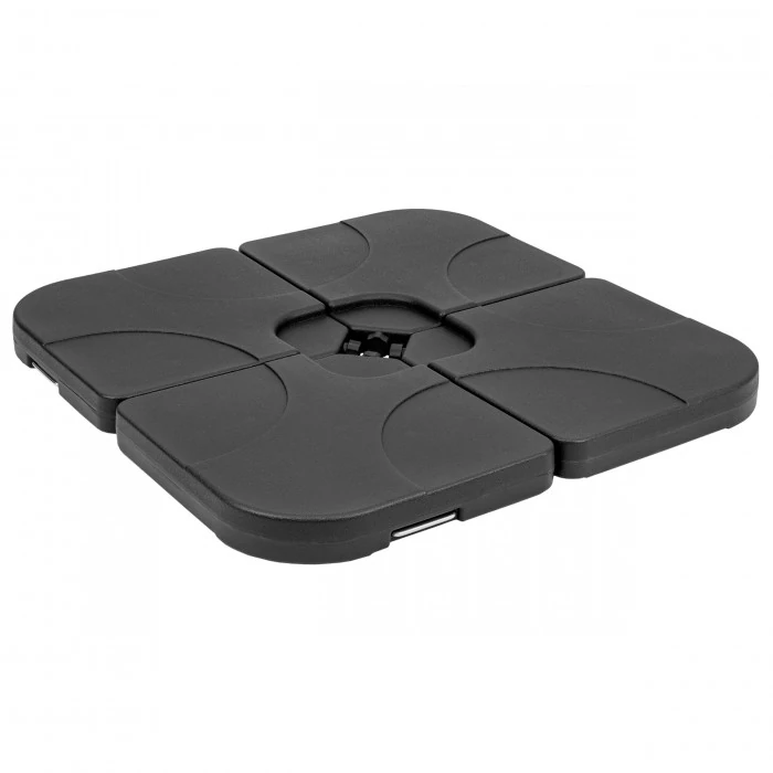 Stabilna podstawa do parasoli ogrodowych Czapla i Kazuar M. Składa się z 4 segmentów (po 15 L), które można wypełnić wodą (60 kg) lub piaskiem (80 kg). Wykonana z trwałego HDPE, odporna na warunki atmosferyczne. Idealna do parasoli z czaszą do 3 m.