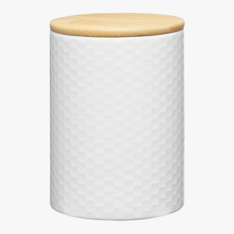 Pojemnik kuchenny Tuvo z bambusową pokrywką to doskonałe rozwiązanie do przechowywania żywności, które łączy w sobie elegancję, trwałość i ekologiczną jakość. Wykonany z wysokiej jakości ceramiki w matowej bieli, prezentuje się nowocześnie i stylowo, pasując zarówno do klasycznych, jak i nowoczesnych wnętrz kuchennych.
