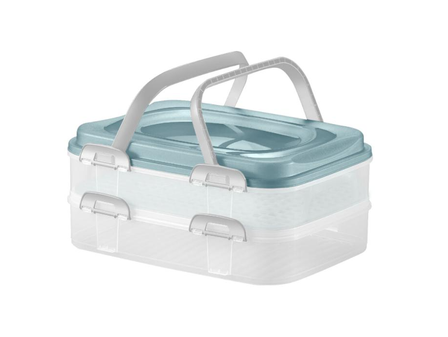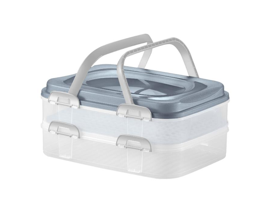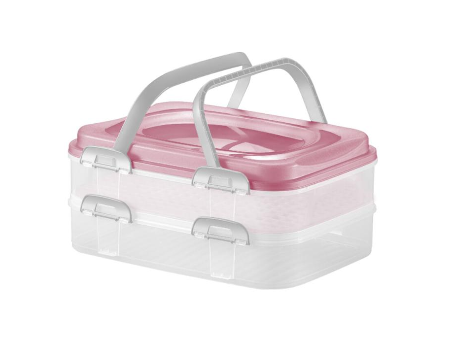 - Przemyślana konstrukcja: dwupiętrowy pojemnik zapewnia wygodne przechowywanie wypieków na różnych poziomach, co umożliwia zaoszczędzenie miejsca i bezpieczne transportowanie większej ilości ciast, ciasteczek czy nawet przekąsek na imprezy, spotkania rodzinne czy pikniki.