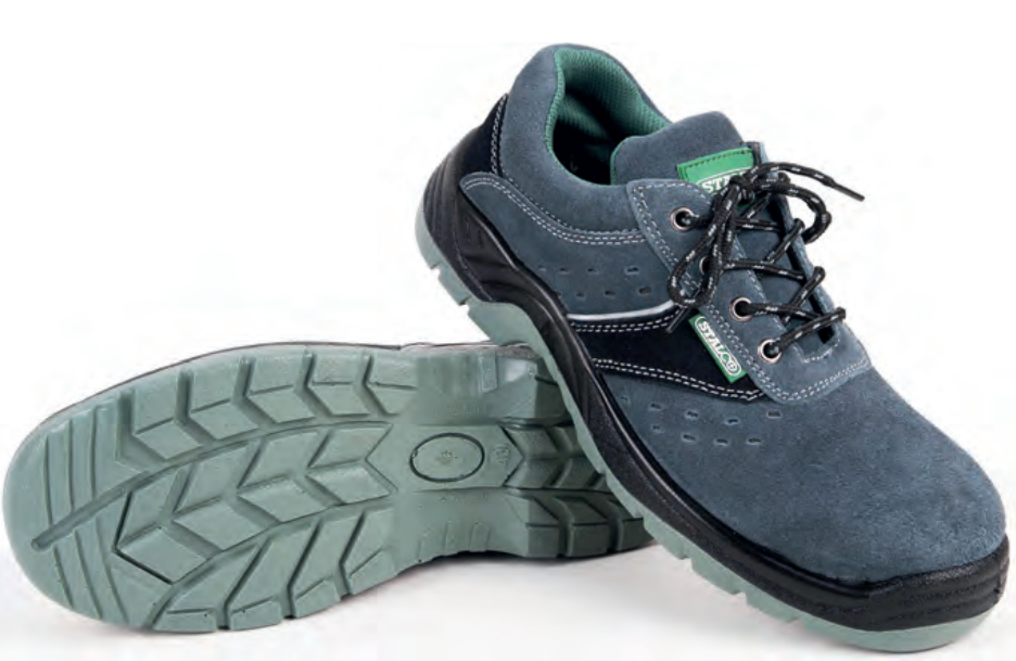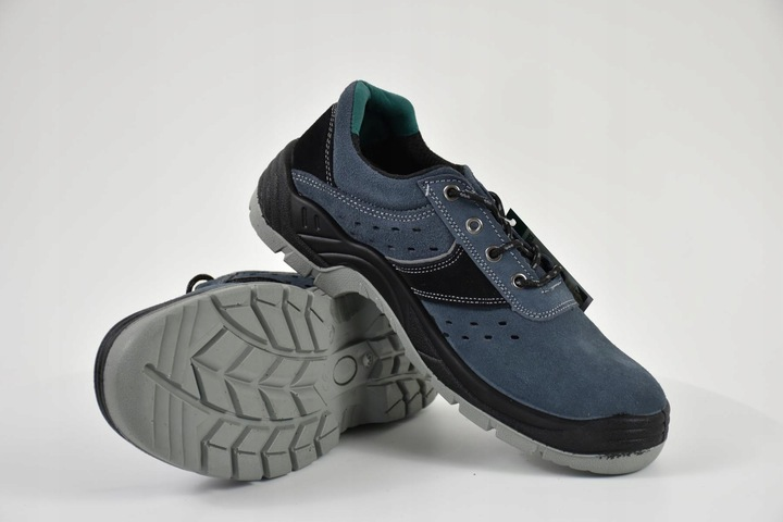 Półbuty robocze Service. Posiadają wzmocniony stalową wkładką nosek, zamszową warstwę zewnętrzną, są olejoodporne, antypoślizgowe i antystatyczne.