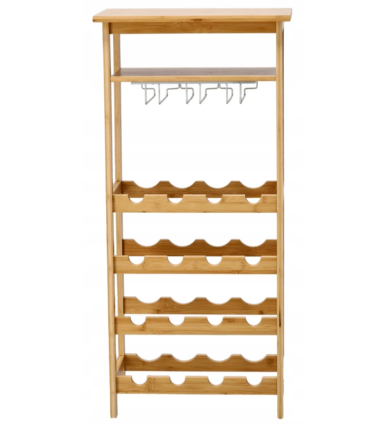 Stojak na wino bambusowy z uchwytami na kieliszki Mini Barek 100 m