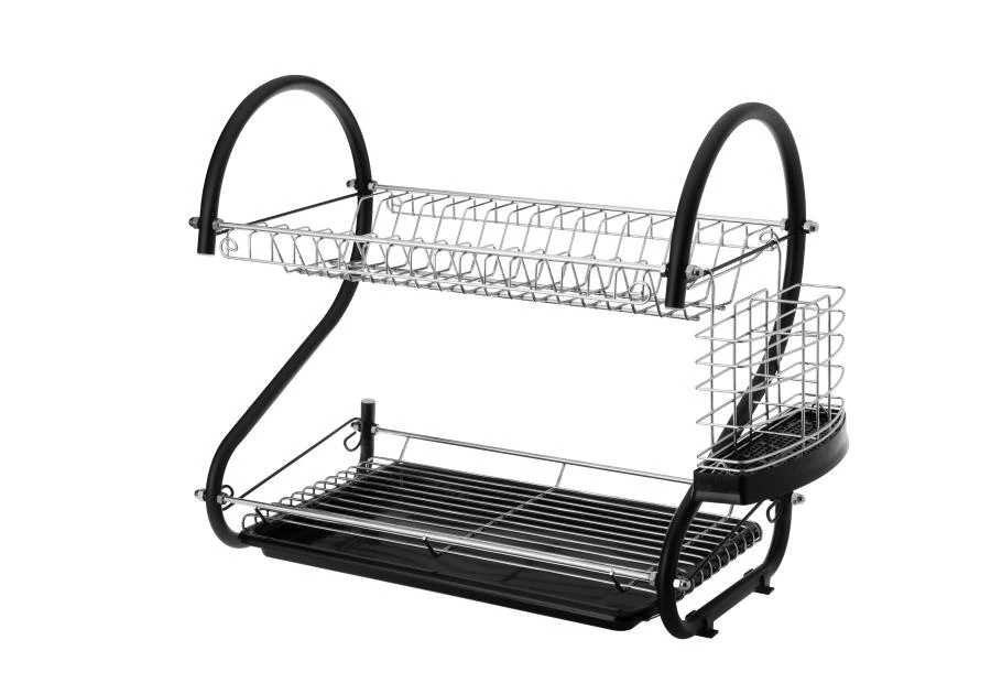 Suszarka do naczyń Camelia w kolorze czarnym to eleganckie i praktyczne rozwiązanie, które ułatwia codzienne suszenie naczyń. Wykonana z chromowanego drutu, posiada silikonowe wykończenie, które zapewnia stabilność i bezpieczeństwo. Dzięki przemyślanej konstrukcji pomieści zarówno kubki, miski, jak i duże talerze, a antypoślizgowa powierzchnia zapobiega przesuwaniu się naczyń.