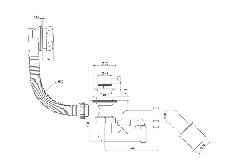 - Średnica rury odpływowej: 40 mm