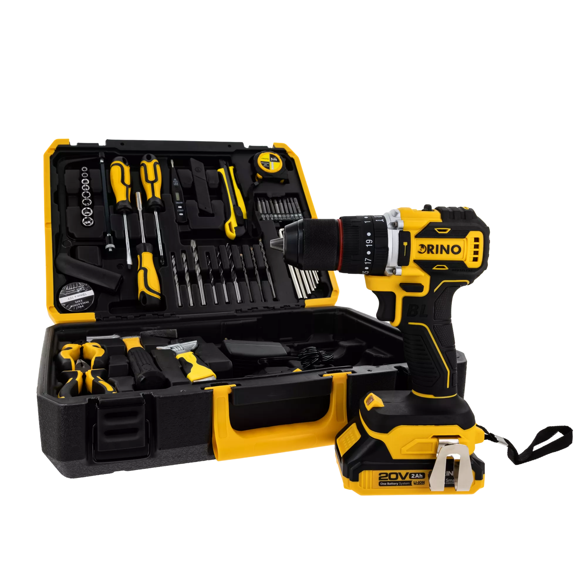 Wiertarko-wkrętarka akumulatorowa Rino DRI20LI 20 V to kompletny zestaw narzędzi, który zapewnia mobilność, moc i niezawodność w każdej sytuacji – od domowych napraw po wymagające prace budowlane.