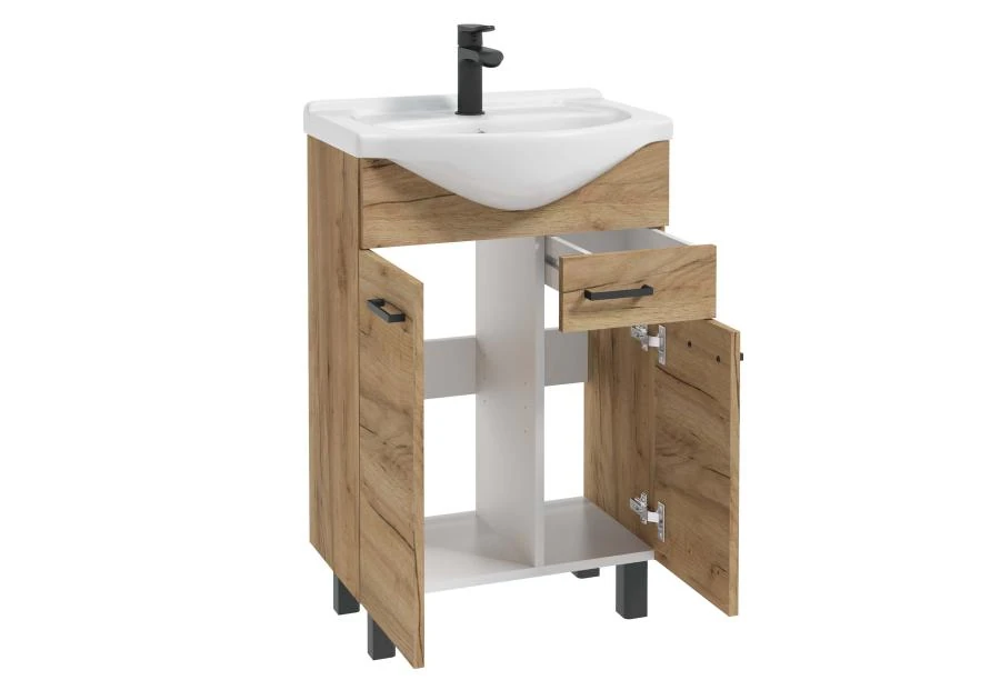 Zestaw łazienkowy szafka z umywalką Mea 55 cm dąb craft – funkcjonalność i styl w Twojej łazience