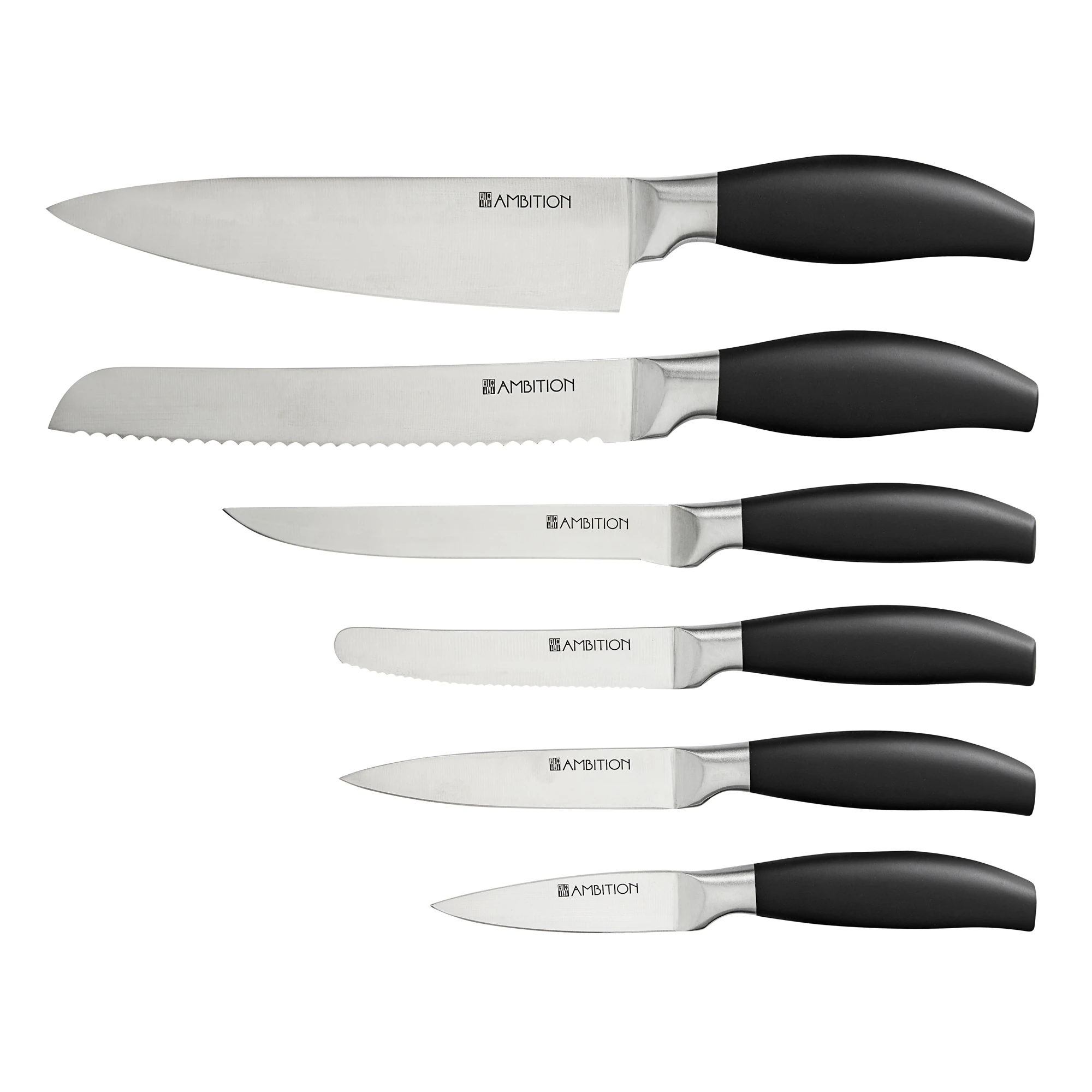 Zestaw noży Silvery marki Ambition to eleganckie i funkcjonalne rozwiązanie, które doskonale uzupełni każdą kuchnię. Komplet składa się z 7 elementów – sześciu noży o różnym przeznaczeniu oraz stylowego drewnianego bloku, który ułatwia przechowywanie i zapewnia porządek na blacie. Nowoczesna, szara kolorystyka sprawia, że zestaw świetnie wpisuje się zarówno w klasyczne, jak i nowoczesne aranżacje wnętrz.