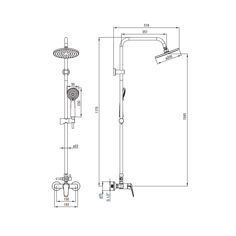 Zestaw Prysznicowy Boro z Baterią Ścienną - Deante