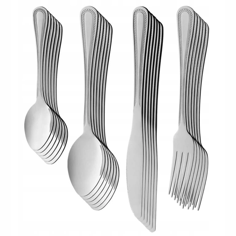 Kompletny zestaw dla 6 osób – zawiera 6 noży, 6 widelców, 6 łyżek i 6 łyżeczek, idealny do codziennych posiłków i specjalnych okazji.