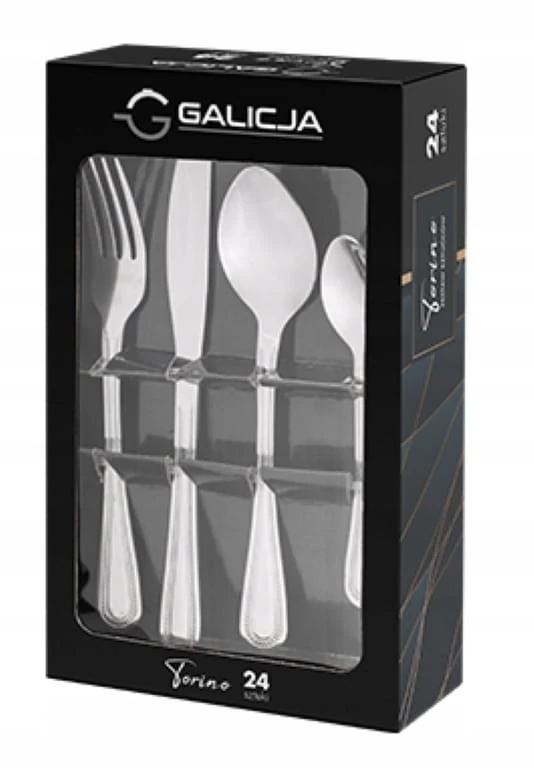 Zestaw sztućców Torino 24-elementowy to praktyczne i estetyczne rozwiązanie dla każdego domu. Doskonały jako prezent ślubny, urodzinowy lub do nowego mieszkania. Dzięki swojej jakości i stylowi będzie służył przez długie lata, dodając klasy każdemu posiłkowi.